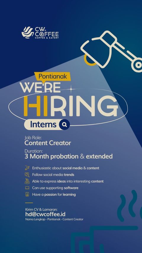Pontianak, We’re Hiring Interns Job Role: Content Creator Duration: 3 Month probation & extended Enthusiastic about social media…