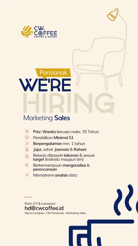 Pontianak, We’re Hiring Marketing Sales Pria / Wanita Tidak sedang menempuh pendidikan Jujur & penuh tanggung jawab Fresh…