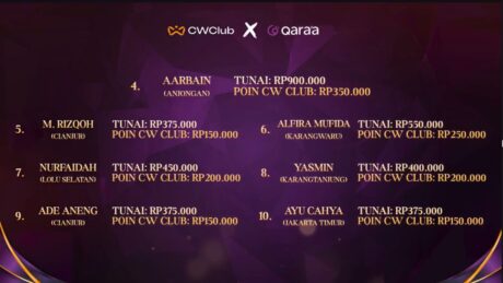 5. M. Rizqoh (Cianjur) – Uang Tunai: Rp375.000 | Poin CW Club: Rp150.000