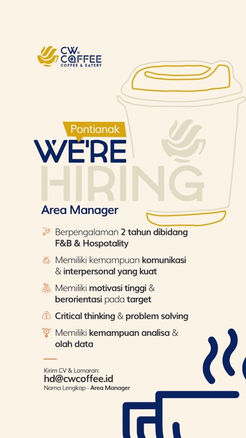 - Berpengalaman 2 tahun dibidang F&B & Hospotality
