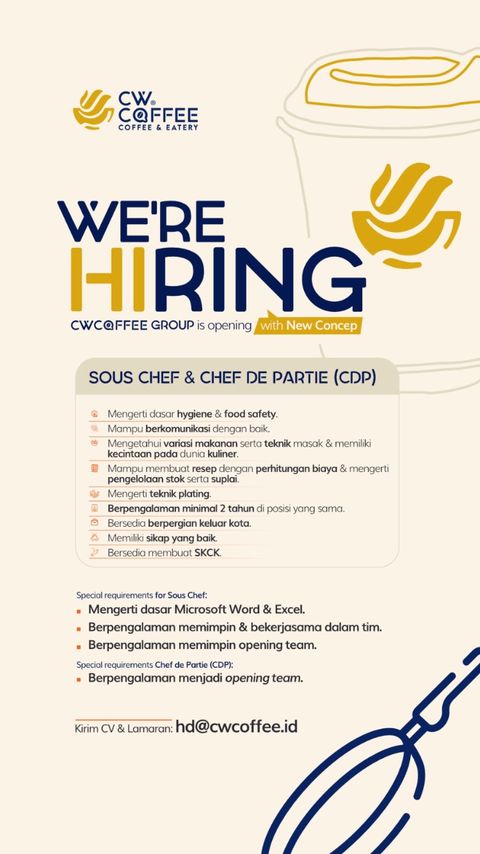 Kirim CV & Lamaran: hd@cwcoffee.id